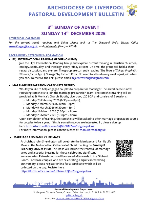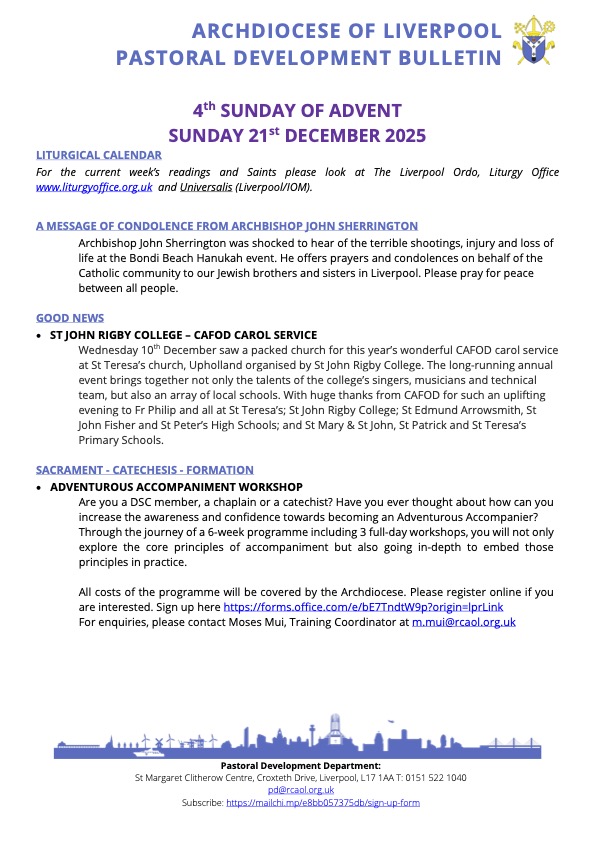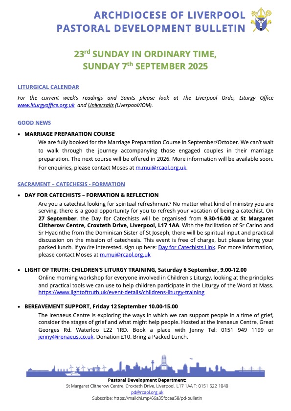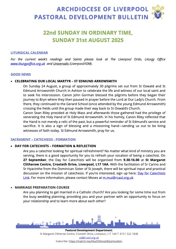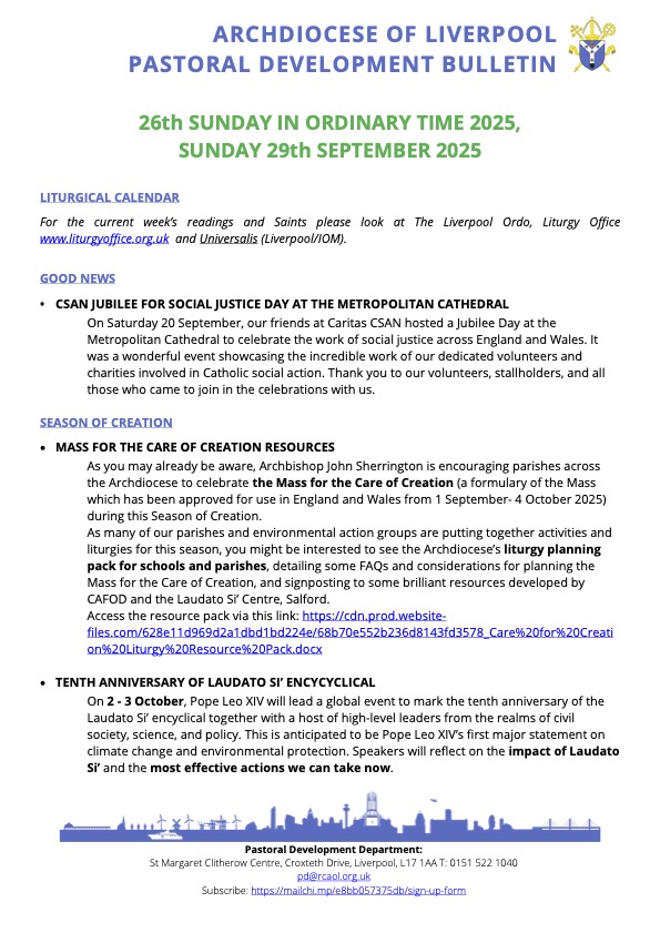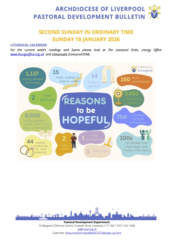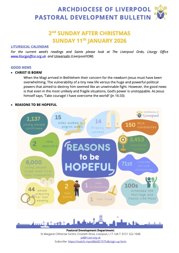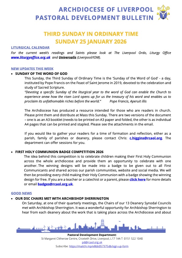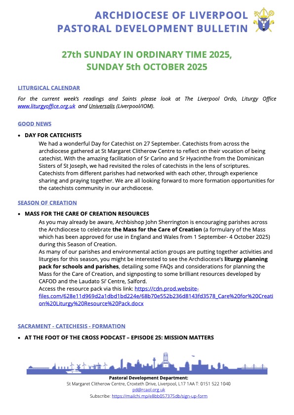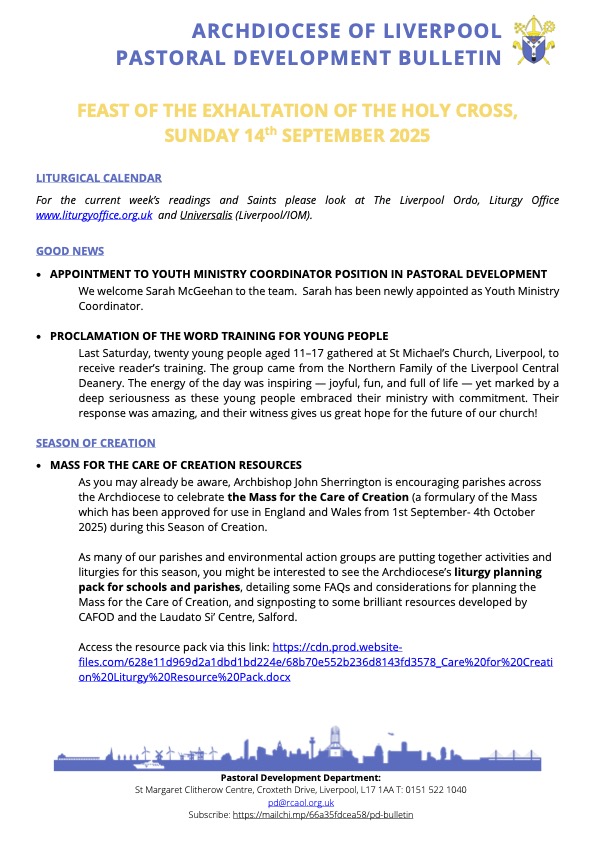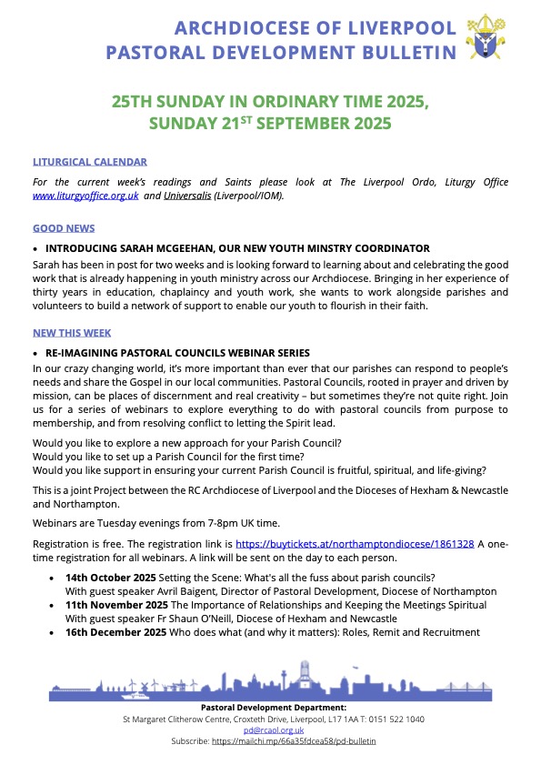 Please read the Pastoral Development Bulletin below from the Archdiocese of Liverpool, lots of interesting information about what is going on locally.